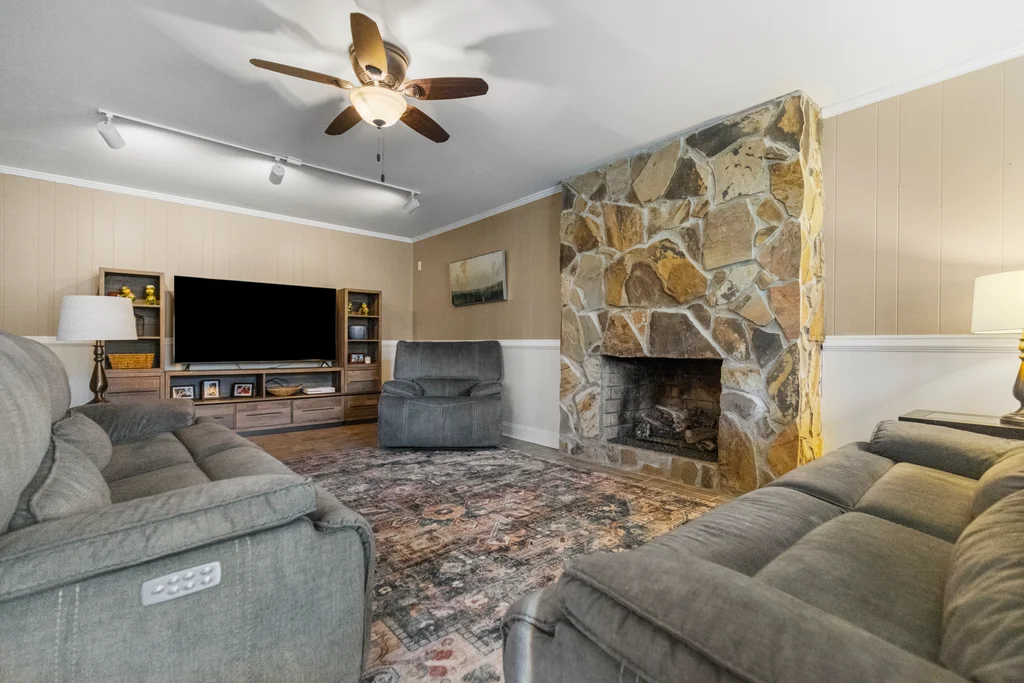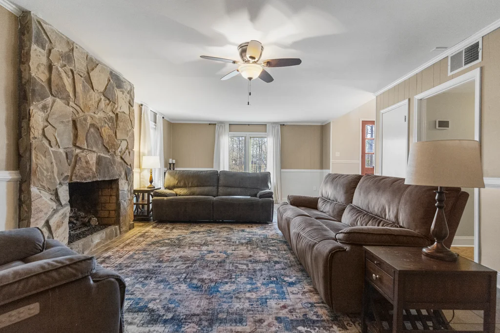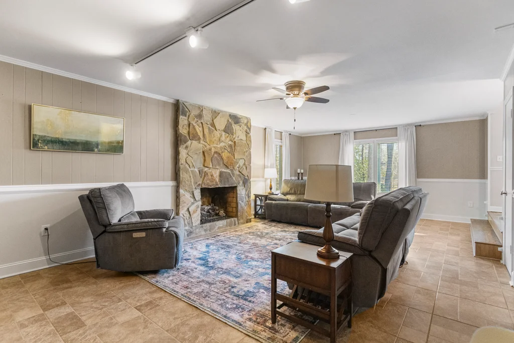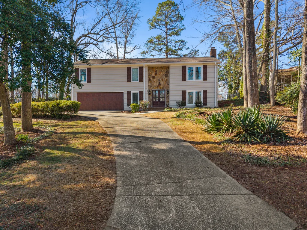 408 Camelot Dr is a beautifully appointed home tucked into the heart of the Holly Tree Plantation golf community, perfectly positioned along the14th green. From the moment you arrive, the craftsman-style glass double door entry sets a welcoming tone. Step inside this split foyer home and into a soaring two-story foyer where rich hardwood floors and updated lighting immediately elevate the space. At the heart of the home, the kitchen shines with granite countertops, tile backsplash, stainless steel appliances, and a gas stove—perfect for home chefs and casual gatherings alike. The kitchen flows seamlessly into a wide open living room, where one of two impressive stone hearth fireplaces creates a warm focal point, complete with remote-start gas logs for effortless ambiance. Let’s head down the hall where comfort takes center stage. Here you will find 3 spacious bedrooms, including the primary bedroom with it's own en suite full bathroom, that feature ceiling fans and newer carpet, creating cozy, restful retreats. The entry level offers a second living space, a second stone hearth fireplace, tile floors and a room that serves beautifully as a home office or guest bedroom, complete with its own private full bath. An ideal setup for multigenerational living or work-from-home needs. A spacious walk-in laundry room and access to the attached two-car garage with an additional storage room add everyday convenience. Out back, the iron rod fencing keeps the space open and elegant while still providing security along with picturesque golf course views. A 15x20 paver patio invites outdoor dining, morning coffee, or evening relaxation overlooking the fairway. A new water heater installed in2026, new upstairs HVAC installed 2025 add to a long list of thoughtful upgrades, 408 Camelot Drive offers refined living in one of the area’s most established golf communities—ready to welcome its next chapter. Residents enjoy the option to join the Holly Tree Country Club, where amenities include a pool, tennis courts, clubhouse, and championship golf—bringing resort-style living right to your doorstep. Additionally this home is close to medical facilities, the interstate and the popular Bridgeway Station complex. Schedule your private tour today.