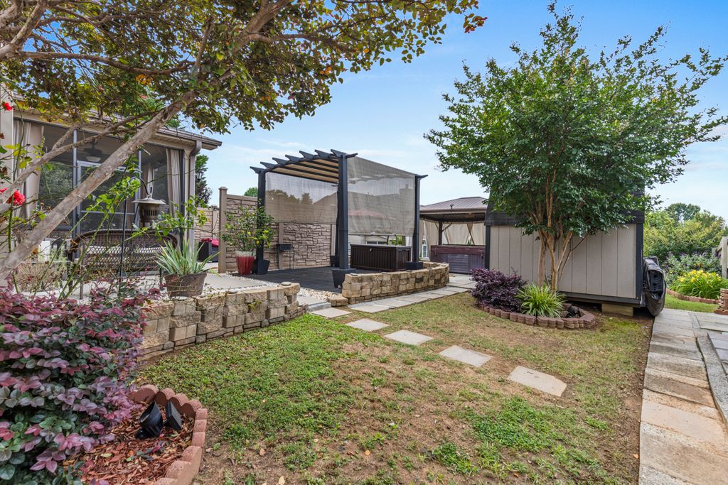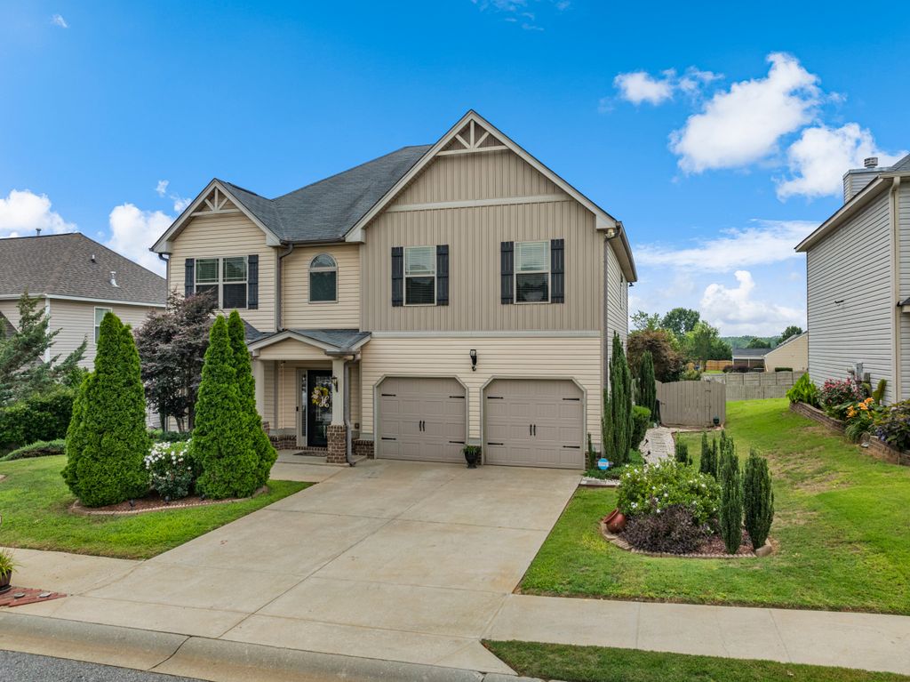 807 E Holloway Dr is an incredible home with it's very own built-in backyard oasis. This home is loaded with curb appeal in the form of extensive landscaping, exterior lights and full yard irrigation. Inside this beautiful home you will discover gleaming hardwood floors, tall ceilings, elegant archways, 5 panel doors, extensive crown molding and millwork. Upon entering the 2 story foyer you will find a lovely living room with bay window, ceiling fan and chair rails. Next we have the formal dining room with coffered ceiling, wainscoting and plenty space for for a large table to entertain guests. The open concept kitchen in next with large cabinets, recessed lights, pendant lights, under cabinet lights, stainless steel appliances, granite countertops, island bar, tile backsplash and my favorite, and automatic paper towel dispenser. Let's follow these gleaming hardwoods through the breakfast nook and into the great room which provides an impressive stone hearth with gas starter fireplace. Next we have a convenient powder room and access to the attached 2 car garage. Now let's head upstairs where we find 4 spacious bedrooms including a massive primary bedroom with it's own private bathroom boasting dual sinks, deep soaker tub, stand up shower and a generous walk-in closet. Then we have a large walk-in laundry room followed by bedroom 2 with vaulted ceiling, ceiling fan and deep closet. Down the hall you will find bedroom 3 and 4 connected by a Jack n Jill bathroom. Both these rooms have vaulted ceilings, ceiling fans and deep closets. Now let's head outback to your very own private oasis. There is just so much to love about this space begining with the screened-in porch with ceiling fan and privacy curtains. The concrete pad has been expanded significantly providing space for several areas to kick back and relax and unwind after a stressful day. There are 2 pergolas, a built-in privacy wall, 2 great sheds for storage and an amazing hot tub that conveys with the home.This is more than just a home, it's a sanctuary. All this and it's less than 20 minutes to GSP airport, 15 minutes to I-85 and the BMW factory, and5 minutes to the Tyger River sports complex. Be sure to schedule a private tour today!